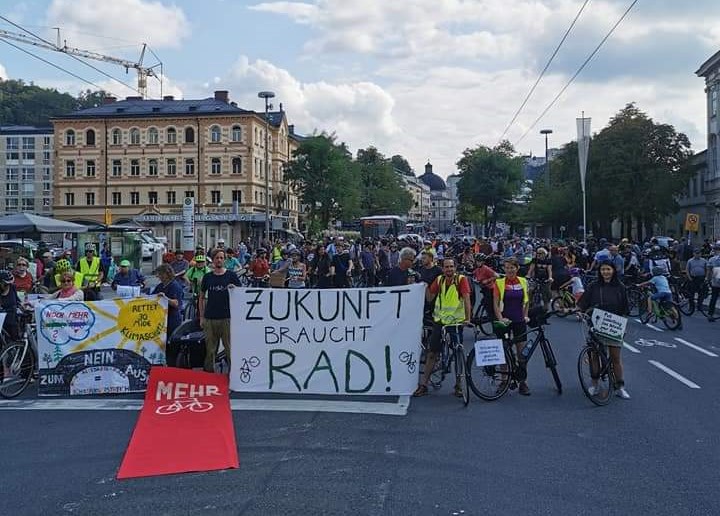 An die 4-500 Radfahrende demonstrierten am 11. 9.2021 in Salzburg für mehr und sichere Radwege, einen Ausbau der Radwegekoordinationsstelle statt deren Zerlegung sowie grundsätzlich eine fairere Verteilung des öffentlichen Raums unter den Verkehrsteilnehmenden. Eingeladen zur Demo hatte der Verein „Radlobby Salzburg“. Ich durfte bei der Abschlusskundgebung ein paar Gedanken beitragen. Hier mein Statement: