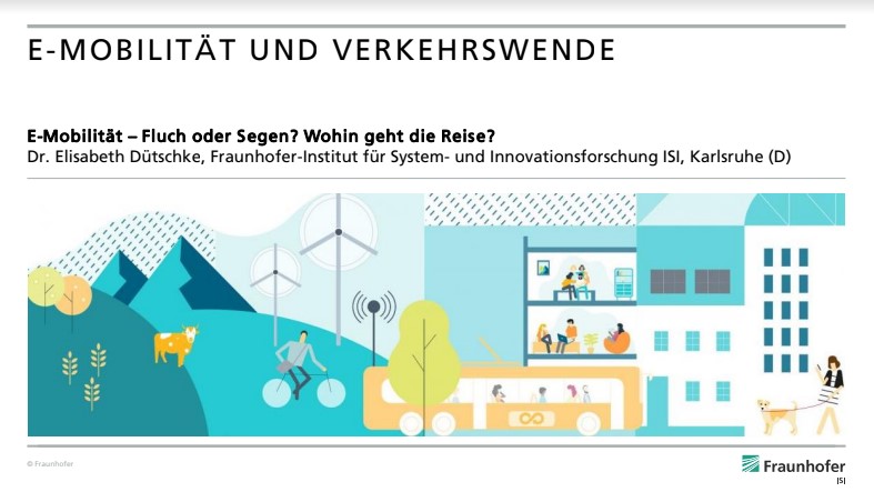 Elektroautos können nur ein Teil der Lösung unserer Verkehrs- und Klimaprobleme sein, so Elisabeth Dütschke vom Fraunhofer-Institut für System- und Innovationsforschung in Karlsruhe, kürzlich in einer Diskussionsveranstaltung der Robert-Jungk-Bibliothek für Zukunftsfragen gemeinsam mit Smart City Salzburg. Und, so fügte sie hinzu, E-Mobilität sei nicht auf Autos beschränkt: „E-Bikes und E-Roller werden in Zukunft noch mehr an Bedeutung gewinnen.“ Zweifellos bestehe die heutige Auto-Mobilität im Widerspruch zu den notwendigen Klimaschutzmaßnahmen. Es sei daher verlockend, einfach auf E-Mobilität umzusteigen: „Die Straßeninfrastrukturen sind gebaut, E-Autos sind technologisch ausgereift, die Kongruenz zum bestehenden System ist groß“. Notwendig sei jedoch eine Mobilitätswende in drei Schritten, so die Expertin: Erstens „Verkehr vermeiden“ etwa durch mehr Homeoffice, zweitens „Verkehr verlagern“, in Städten etwa auf das Fahrrad, und erst drittens „Verkehr verbessern“ durch den Umstieg auf E-Mobilität.