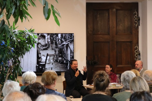 Ausgewählte Werke sind bis Ende Juni 2025 in der Ausstellung „Begegnungen in Lambaréné“ zu sehen, die mit einer Vernissage am 14. Jänner 2025 eröffnet wurde. Eva Schröcksnadel, die Enkelin von Kaufmann, erzählte vom Kontakt ihres Großvaters mit Albert Schweitzer. Hans Holzinger, Senior Adivsor der Robert-Jungk-Bibliothek für Zukunftsfragen, berichtete über die Schweitzer-Biografie von Robert Jungk aus dem Jahr 1955. In seiner Kritik am naturwissenschaftlich-technischen Fortschrittsglauben war Robert Jungk stark vom Denken Albert Schweitzers beeinflusst. Eine erweiterte Fassung des Inputs kann hier nachgelesen werden. Moderiert wurde der Abend von Martin Stürmer, afrika-info.