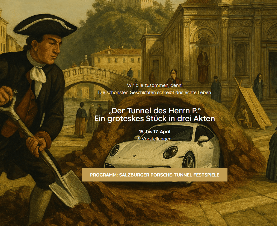 Gegen einen Privattunnel des Unternehmers Ferdinand Porsche zu seiner Villa auf Salzburger Stadtgrund – geschätzte Kosten 10 Millionen Euro – gibt es zivilgesellschaftlichen Widerstand sowie eine Online-Petition. Die Aktivist*innen sammelten über 16.000 Unterschriften in einer Onlinepetition gegen den geplanten Porsche-Tunnel durch den Kapuzinerberg, mehr dazu in 16.000 Unterschriften gegen Porsche-Tunnel (salzburg.ORF.at, 15.05.2025). Damit soll auch politischer Druck erzeugt werden, ehe über das Projekt abgestimmt wird. Der Bau würde in den kommenden Jahren Lärm und Beeinträchtigungen für die Menschen verursachen und die Umwelt schädigen. Die Tonnen an Beton, die in den Berg gepumpt werden sollen, vergrößern Porsches ökologischen Fußabdruck deutlich. Die Klimaschäden zahlen alle. Der Journalist Heinrich Breidenbach argumentiert das Nein wie folgt: „Ein privater Autotunnel für zehn Millionen Euro mit einem riesigen CO2 Rucksack ist ein Symbol für zerstörerische, gestrige Wohlstandsbilder.“ Hier mein Statement, um das mich die Aktivist*innen gebeten hatten.