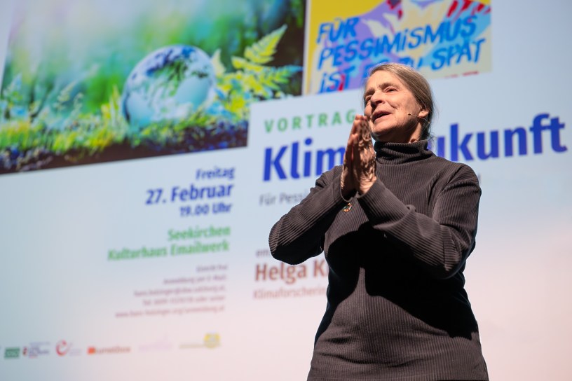 Am 27. Februar 2026 war die Klimaforscherin Helga Kromp-Kolb zu Gast in Seekirchen. Sie machte in ihrem Vortrag einmal mehr deutlich, wie gefährlich die Klimakrise ist und dass wir gut beraten sind, diese ernster zu nehmen als wir es derzeit tun. Eingeladen hatten das Salzburger Bildungswerk Seekirchen, die e5-Gemeinden Köstendorf und Seekirchen sowie der Regionalverband Salzburger Seenland. Das Interesse an der Veranstaltung war riesig, die Kunstbox Seekirchen mit über 180 Teilnehmenden bis auf den letzten Platz gefüllt.