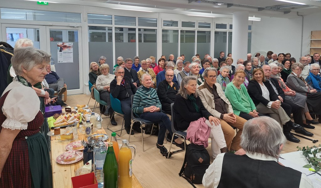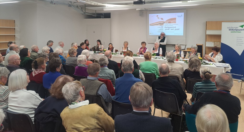 Abwechslungsreich war das Programm der Flachgauer Mundartrunde, die am 22. März 2026 auf Einladung des Salzburger Bildungswerk Seekirchen in der Stadtbibliothek Seekirchen ihre Texte zum Besten gab. Humorvolles fand ebenso Platz wie naturbezogene und gesellschaftskritsch-nachdenkliche Themen. Es wirkten mit: Sigrid Birgmann (Seekirchen), Elisabeth Eibl (Obertrum), Katharina Fürböck (Neumarkt), Karoline Giglmayr (Michaelbeuern), Elfi Forsthuber (Lamprechtshausen), Lisl Pollstätter (Neumarkt), Eva Schweinsteiger (Faistenau) sowie Johann Fuchsberger (Koppl), der durch das Programm führte. Musikalisch begleitet wurde der Nachmittag von der Haslinger Geschwistermusi. Die Goldhauben-Gruppe Seekirchen trug mit Kaffee und Kuchen zum Gelingen bei. Als Ehrengäste konnten der ehemalige Direktor des Musikum Salzburg Michael Seiwald mit Gattin, der Neumarkter Altbürgermeister Willi Winter sowie die Seekirchner Vizebürgermeisterin Emma Mösl-Schäfer begrüßt werden. Besten Dank an alle Mitwirkenden und an die Gastgeberin, die Stadtbibliothek Seekirchen unter der Leitung von Daniela Lukits.